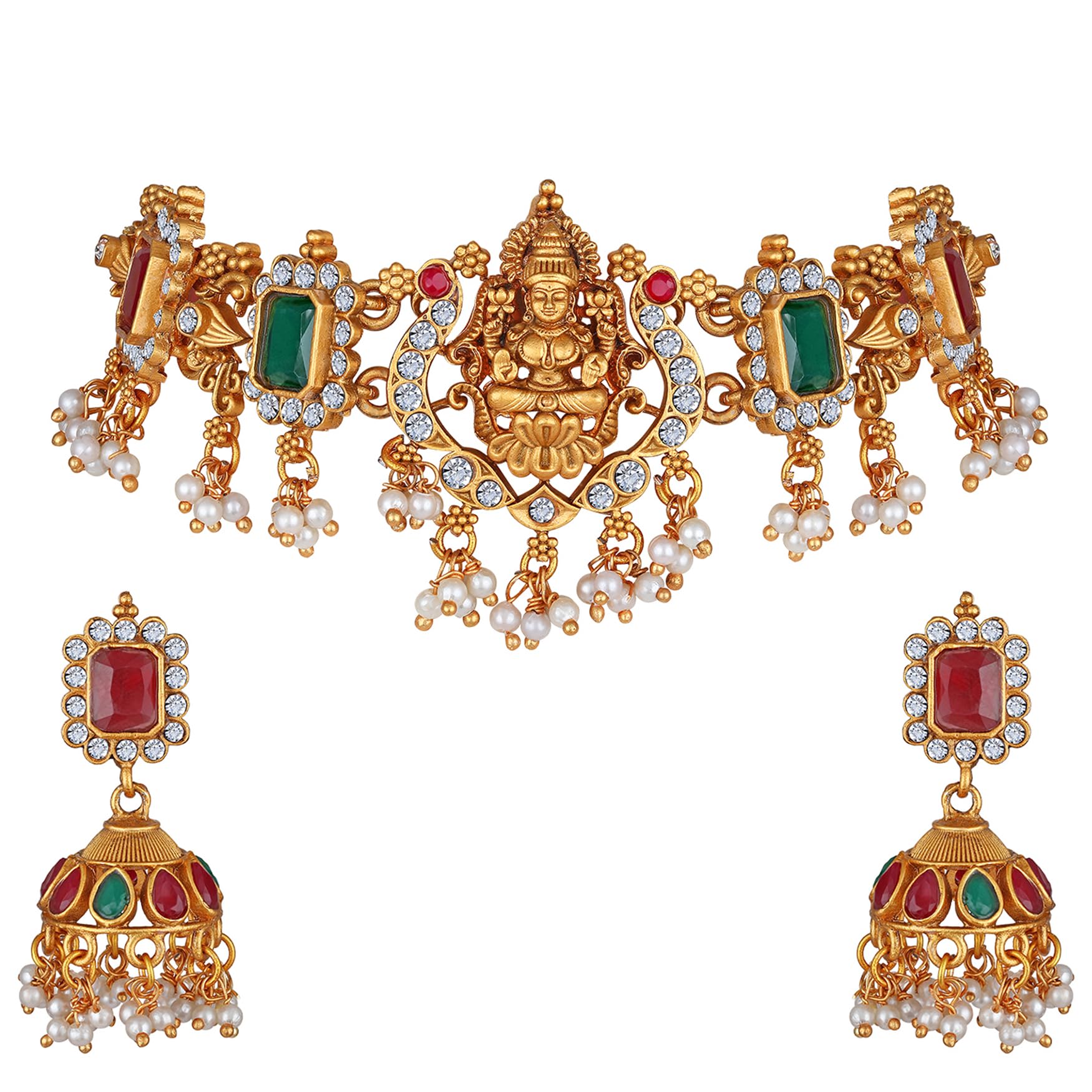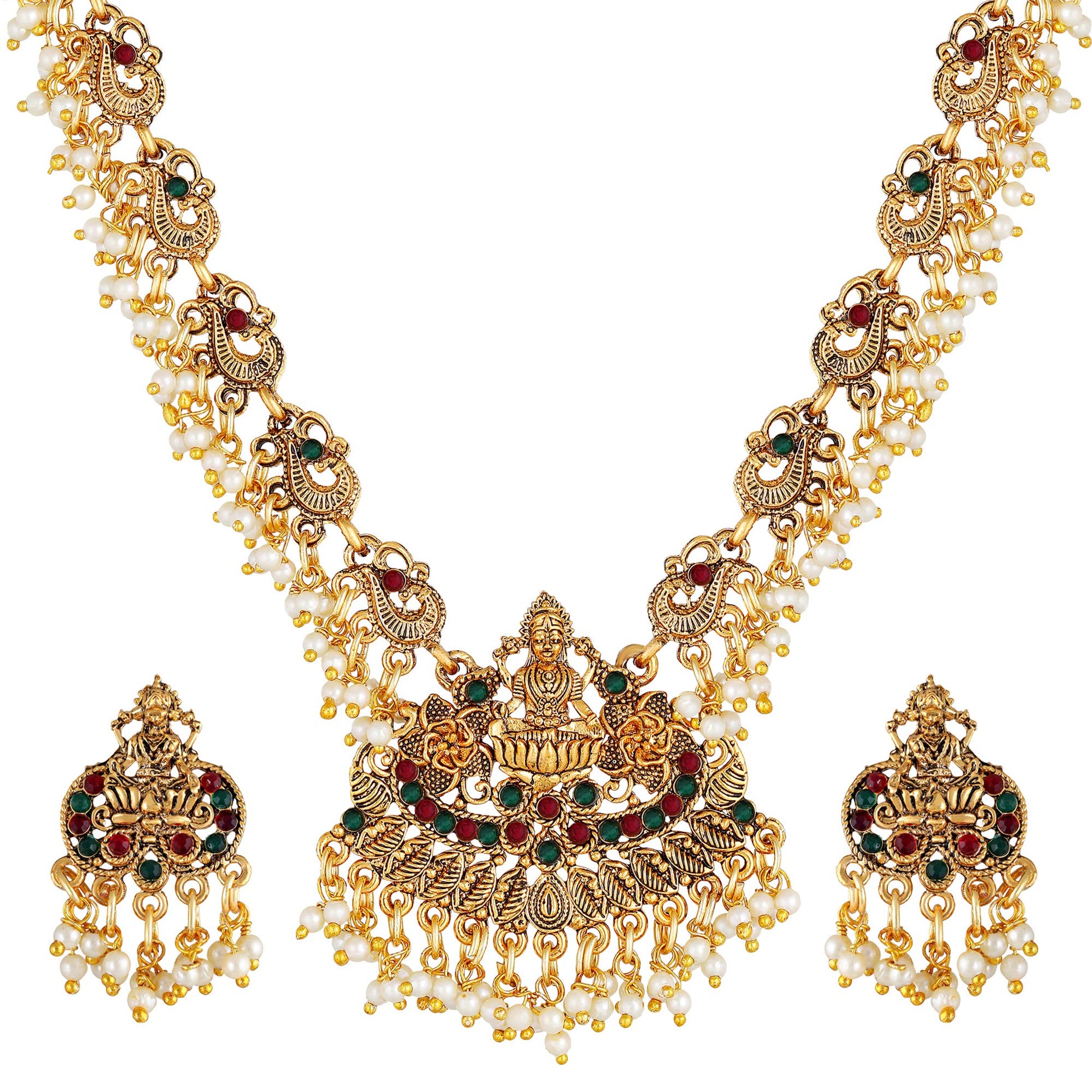 - Perfect festive or wedding party necklace jewellery. Prep up your traditional look with this gold-plated jewellery set. This set will complement your attire and show-off your unique fashion sense